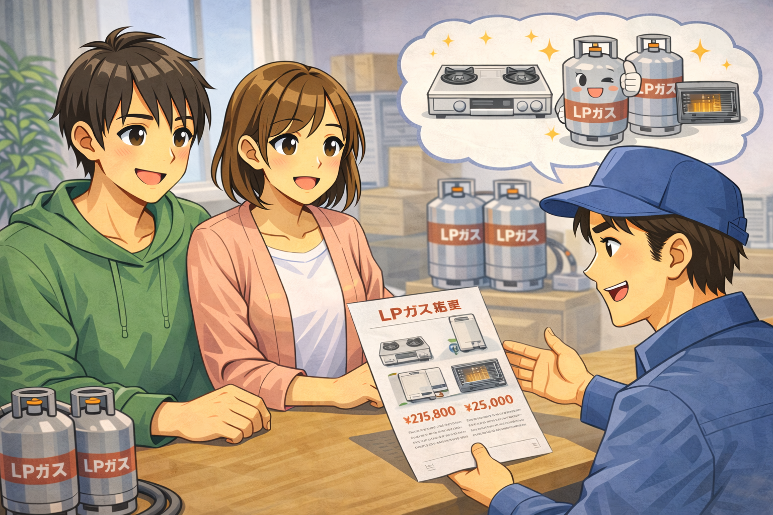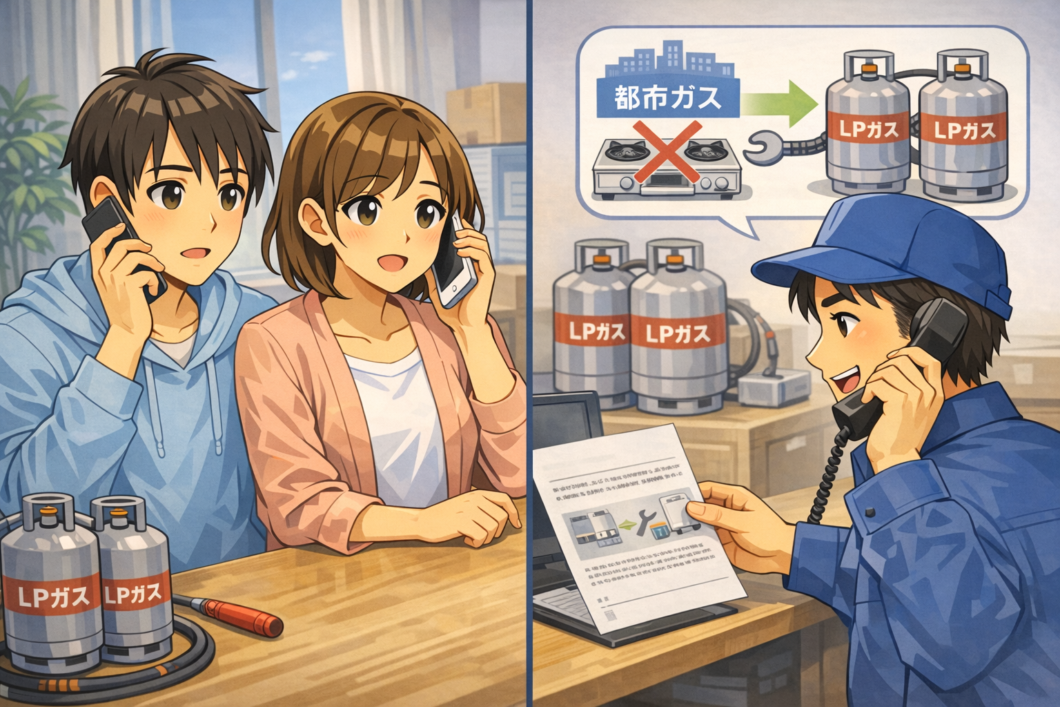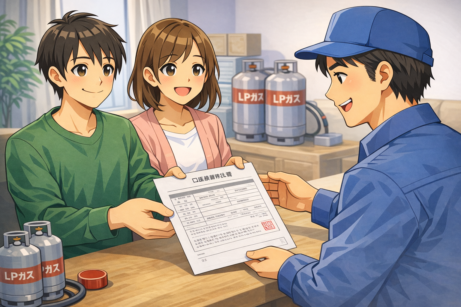 | 商品の引渡時期等 | お客様と打ち合わせの上、ガス設備設置の工事日を決めさせていただきます。弊社が配送計画に基づきLPガスを配達し安定供給いたします。LPガス販売契約は解除されない限り継続的に存続いたします。 |